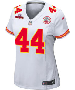 Cam Jones 44 Kansas City Chiefs Super Bowl LVIII Champions 4 Stars Patch Game Women Jersey – White JS1322 nicesnker